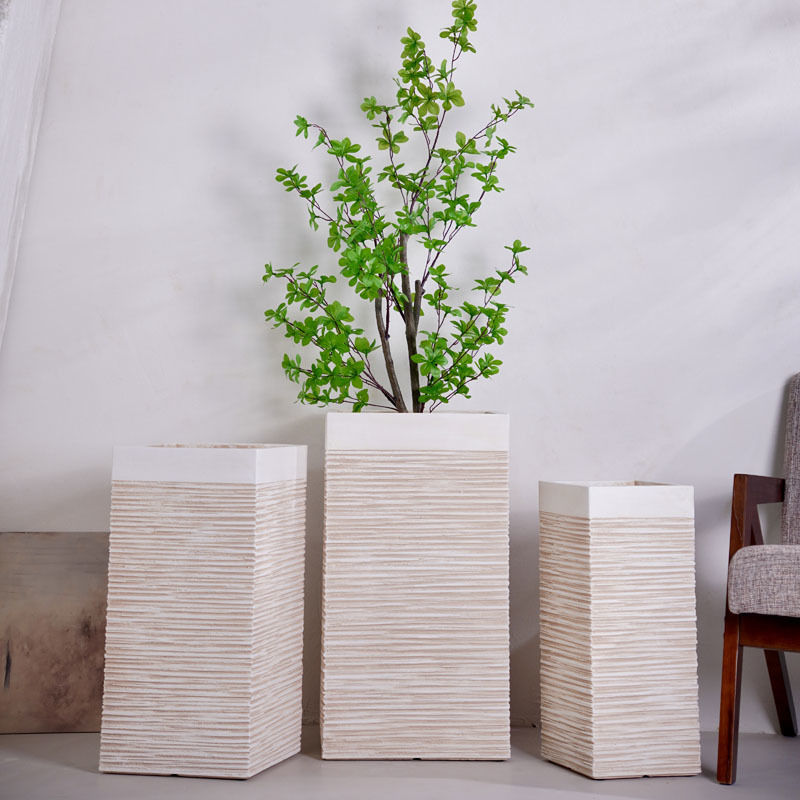 El plantador de arcilla de fibra está disponible en tres tamaños, lo que le da mucha flexibilidad para sus necesidades de diseño.Estas opciones de tamaño hacen que sea fácil crear la configuración perfecta para su espacio.